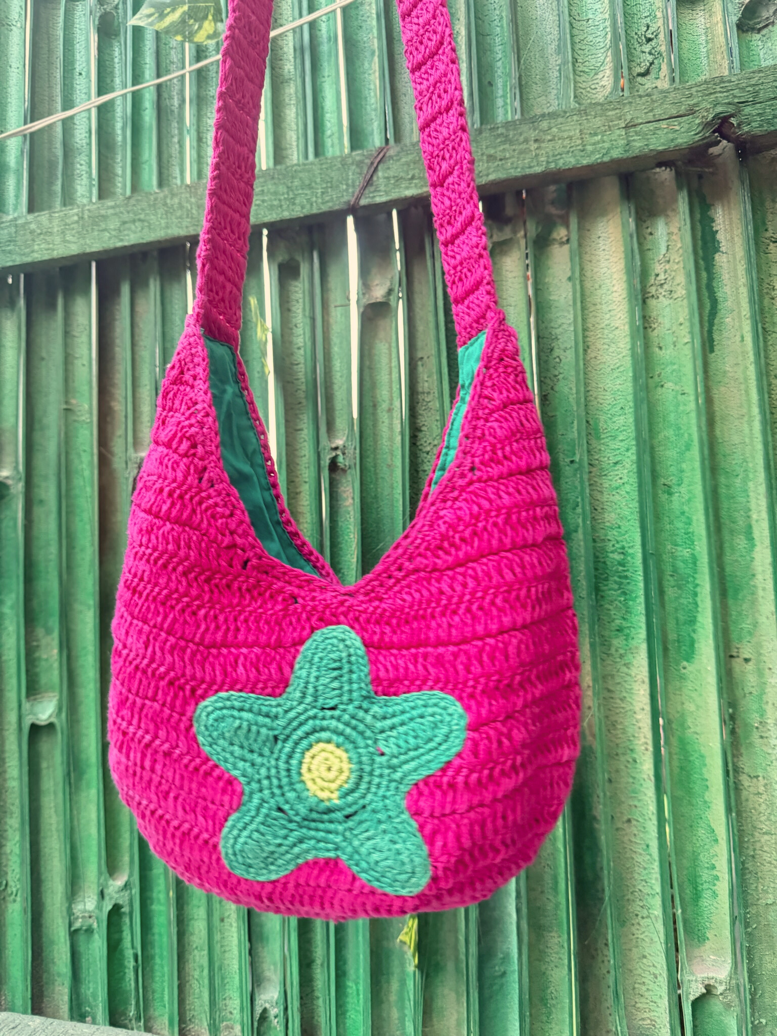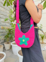 Bold, joyful, and free-spirited – Boho Bloom is a handcrafted sling bag that brings playful energy to your everyday look. Its rich fuchsia base is beautifully contrasted by a teal starflower applique, creating a bag that’s as expressive as it is functional. Whether you’re heading to a weekend café date or exploring a street market, this bag brings comfort, character, and color to your outfit.
