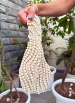 - Hand-embroidered with layered ivory beads in wave-like patterns